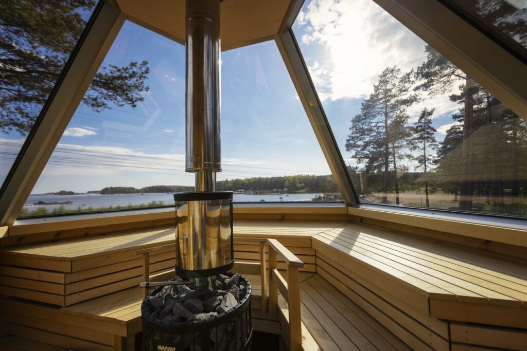 Admire beautiful seascapes from the saunas of Santalahti! This five-star resort offers abundant sauna experiences for various purposes and wishes. Would you like to take a traditional smoke sauna in a cave or the unique experience of a glass-roofed sauna with a sea view? Combine your favorite with relaxing in a hot tub and a stay of your choice, either in a traditional cottage, luxury apartment, or a unique luxury glass villa with a private hot tub. This is where Finnish celebrities come for a romantic getaway, so why not also you?