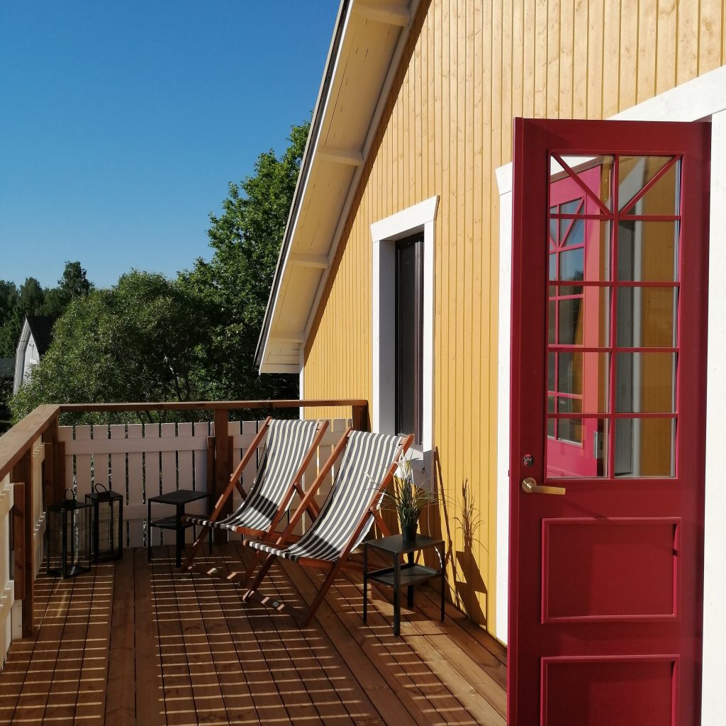 Discover tranquility in this charming 100-year-old wooden Guesthouse Lokinlaulu, nestled in the historic Popinniemi district by the sea. Once a residence for seven families, it has been thoughtfully renovated into four spacious upper-floor bedrooms, each with its entrance. The fully equipped kitchen allows you to prepare breakfast to enjoy on the balcony, glass porch, or in the garden. Activities for all ages await in the maritime surroundings, with nearby attractions like Alvar Aalto’s Sunila, Äijänniemi beach, and the Tiutinen archipelago village. Try fishing or paddleboarding, and relax in the garden sauna with a wood-burning stove. Explore the Monet-like Jokipuisto Park by the Kymi River in Karhula, and the hustle and bustle at the local market square. Arrive by boat or bring your kayak for exploring the Gulf of Finland!