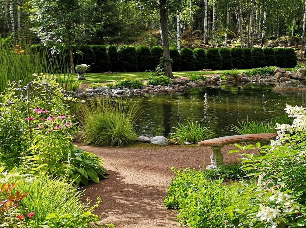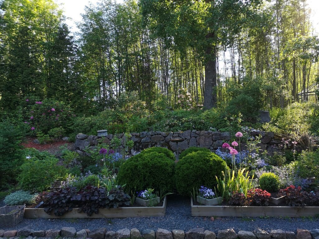 Kun saavut puutarhaan et voi olla huomaamatta valtavia jääkauden tuomio siirtololohkareita. Niiden ympärille levittäytyy monipuolinen kasvien väriloisto, jossa vaihtelevat kurinalaisemmat osiot ja täysin luonnontilaiset alueet. Äläkä unohda hurmaavia pieniä teemapuutarhoja, joista löytyy aina jotain uutta ihasteltavaa.